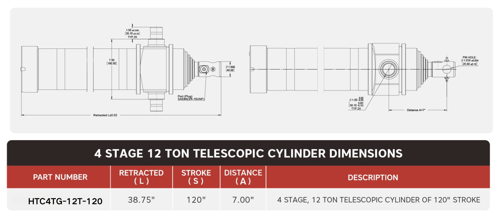 "HTC4TG-12T-120", 4 Peringkat, 12 Tan Daripada 120" Lejang Teleskopik Silinder