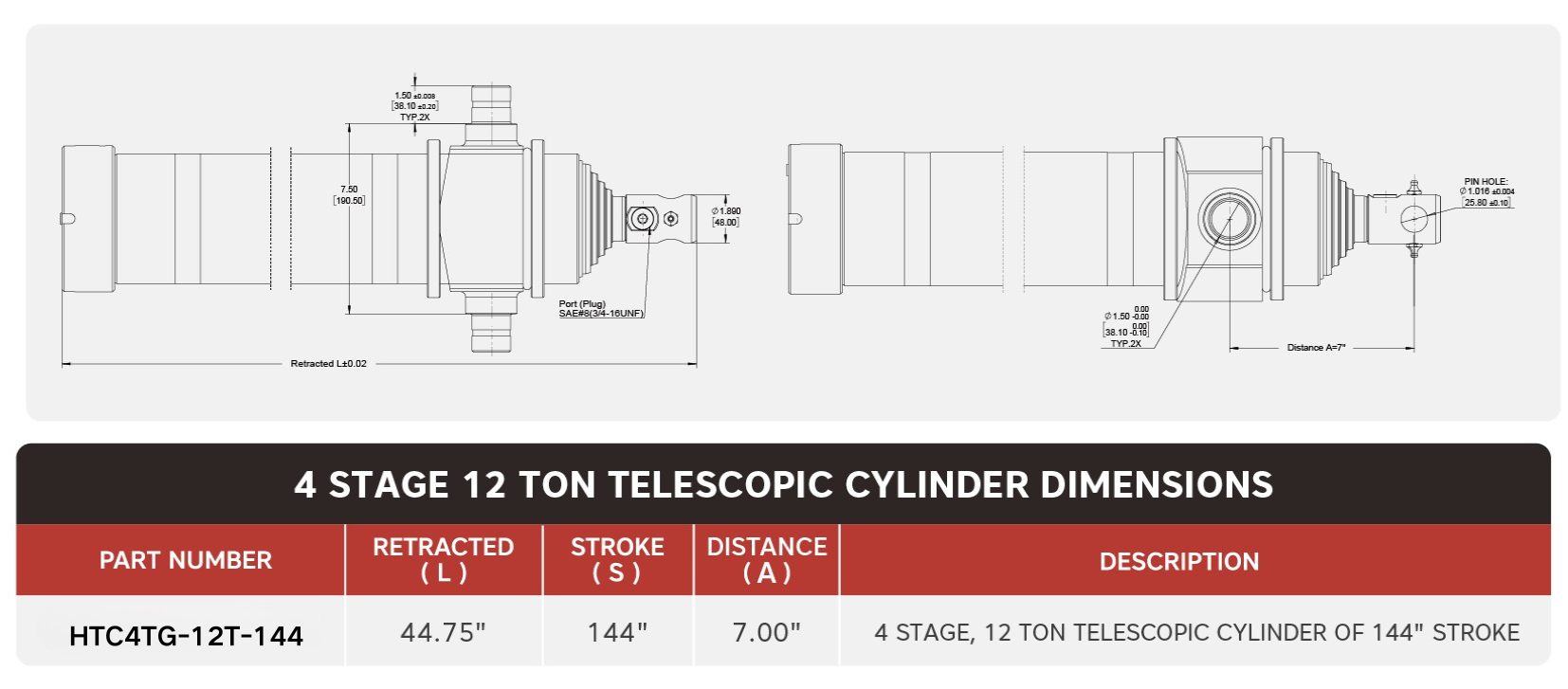 Teg Panas: "HTC4TG-12T-144", 4 Peringkat, 12 Tan Daripada 144" Silinder Teleskopik Lejang, Pengilang, Pembekal, Borong, Disesuaikan, Ada Stok, Trak Enggan, China, Bajak Salji