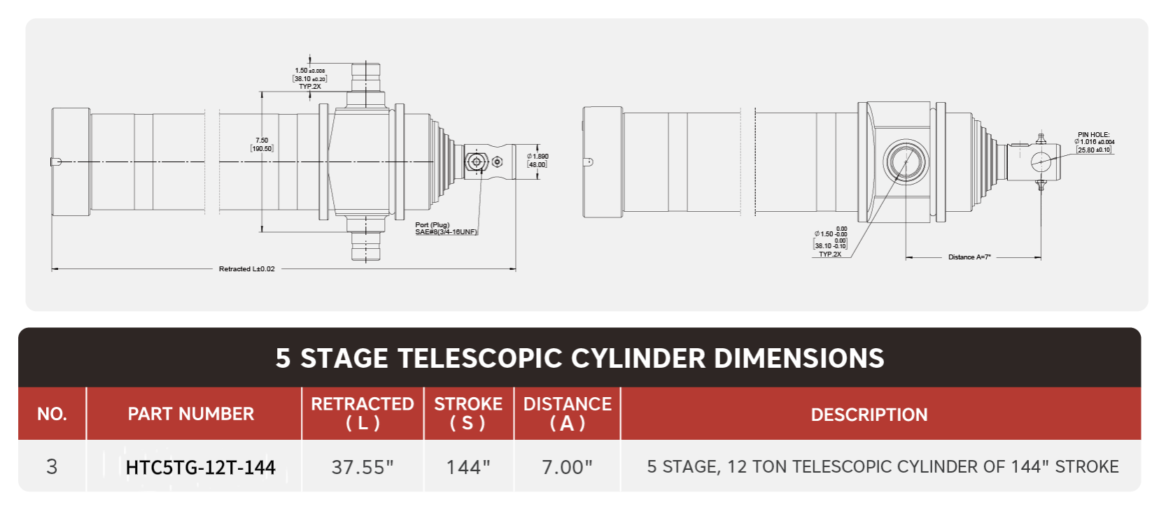"HTC5TG-12T-144", 5 Peringkat, 12 Tan Daripada 144" Silinder Teleskopik Lejang