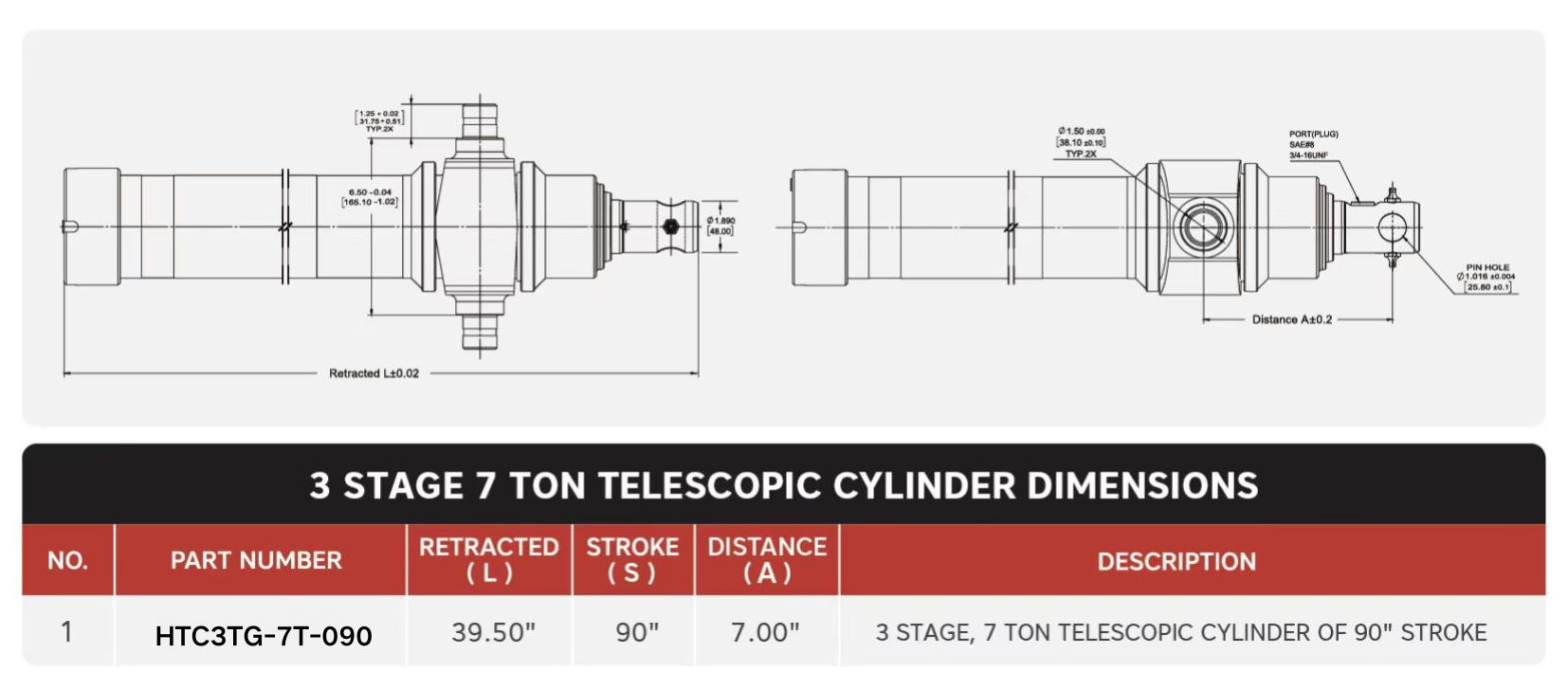 Teg Panas: "HTC3TG-7T-090", 3 Peringkat, 7 Tan Daripada 90" Silinder Teleskopik Lejang, Pengilang, Pembekal, Borong, Disesuaikan, Ada Stok, Trak Enggan, China, Bajak Salji
